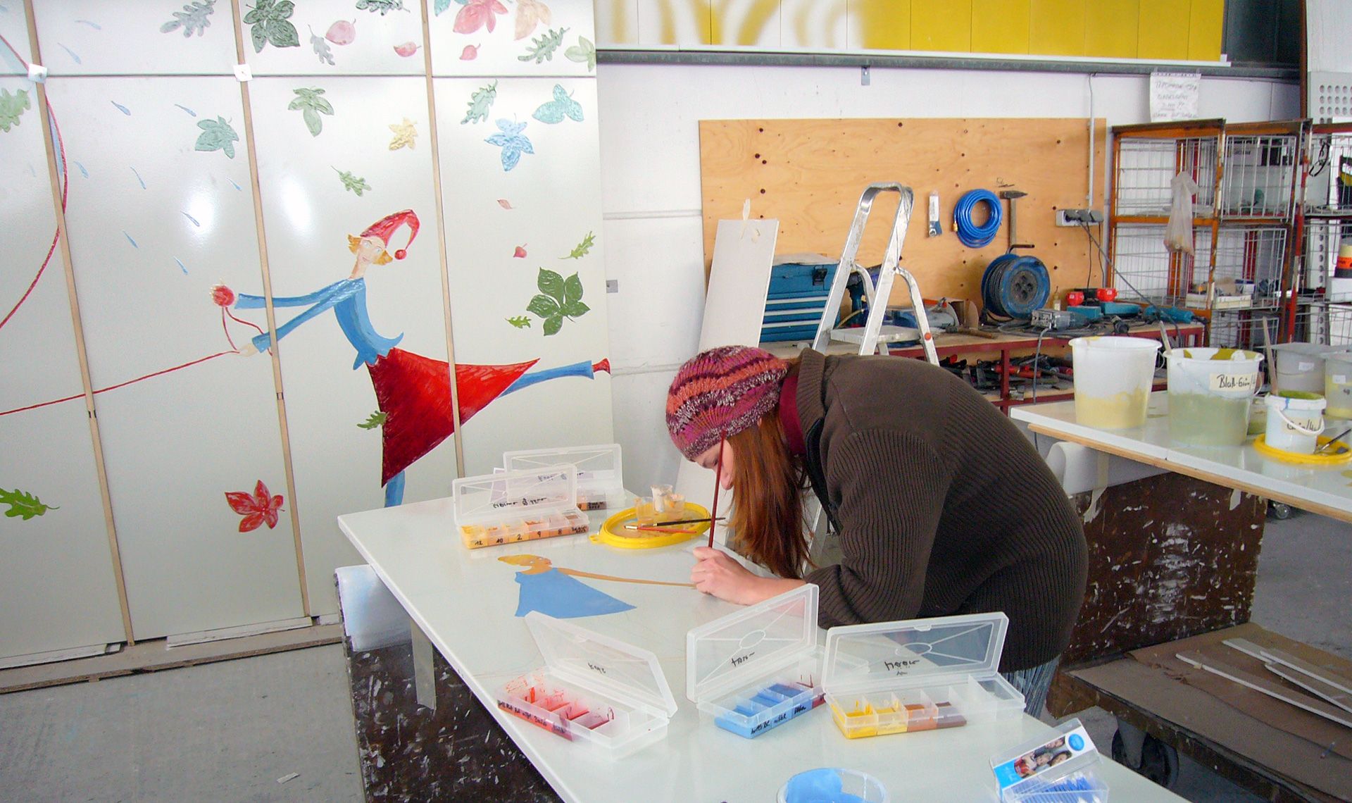 emaillierte Stahlblechkassetten, mit handbemaltem, eingebranntem Muster, unsichtbar in die Stahlkonstruktion eingehängt.