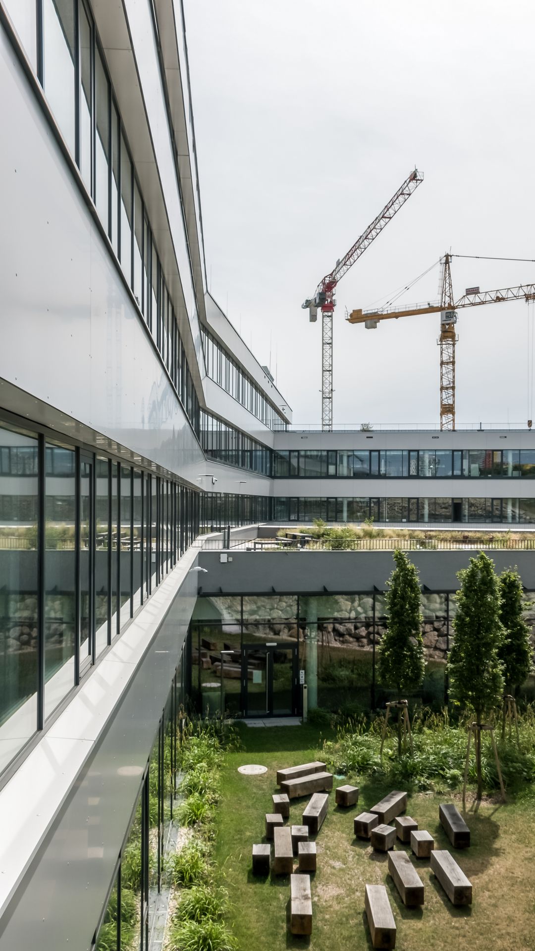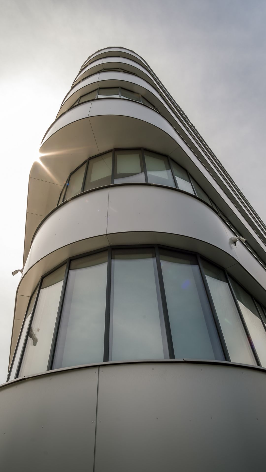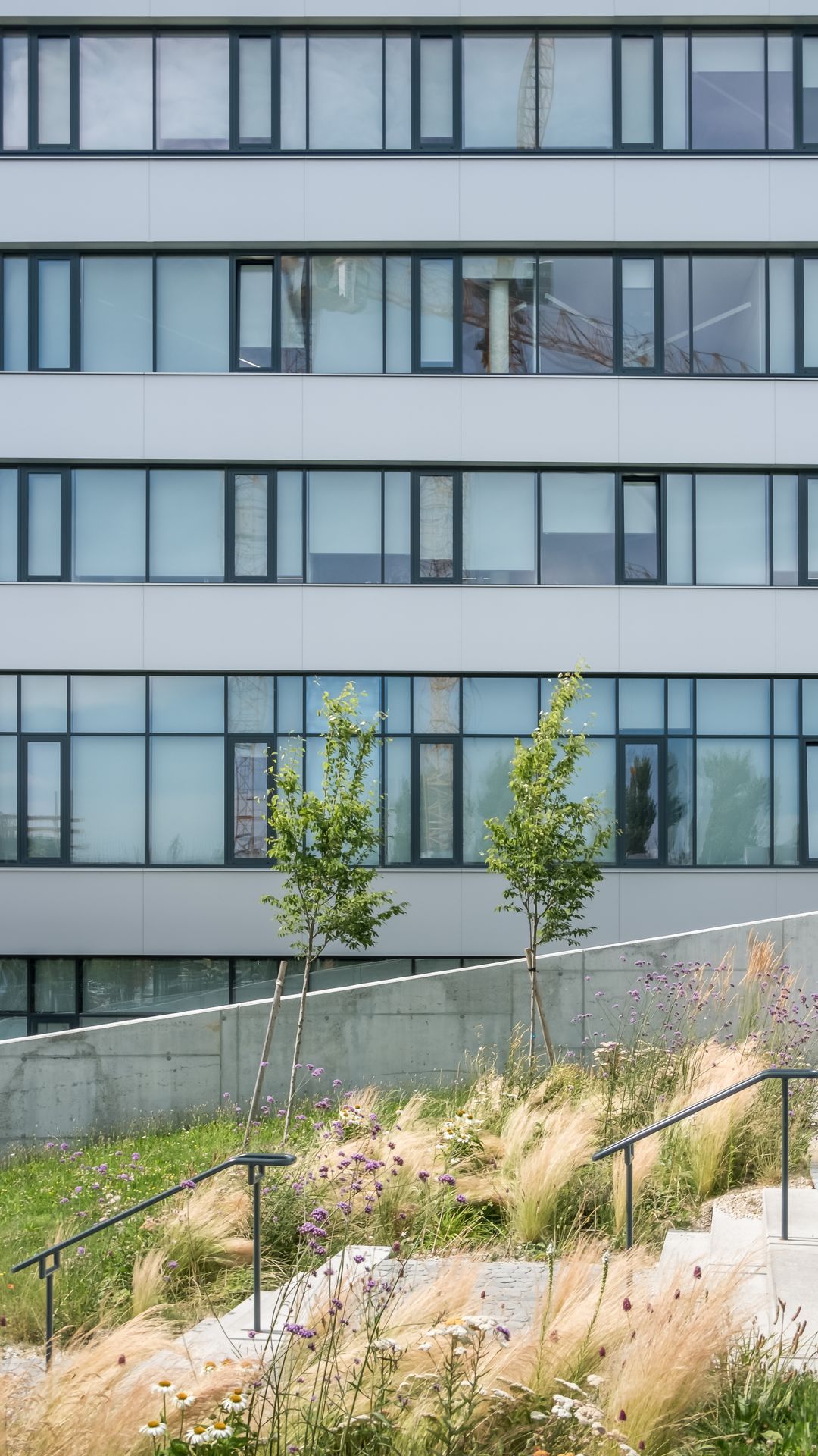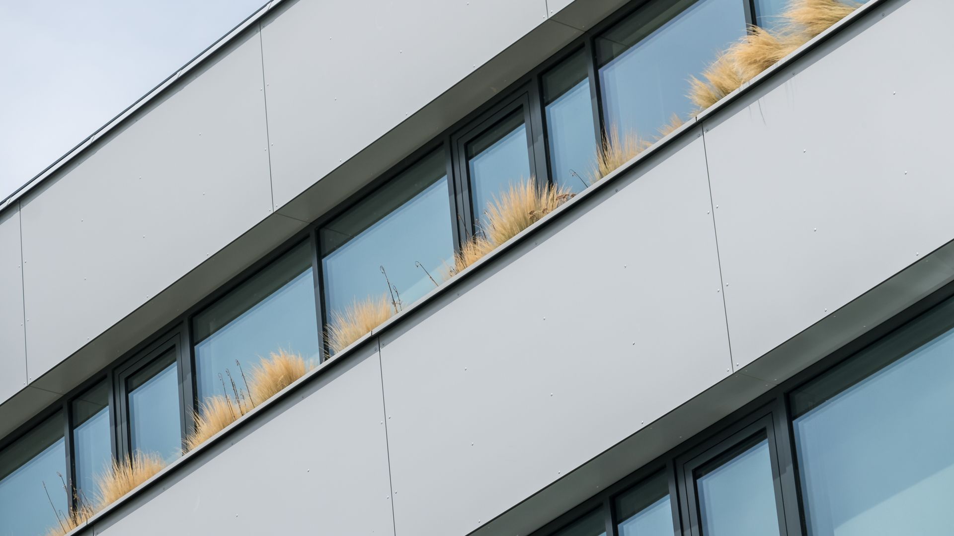 Das Projekt besteht aus 3 Bauteilen, welche in jedem Stock mit einem durchgehenden Alucobondstreifen verbunden sind. Ein echter Hingucker sind die rund ausgeführten Ecken.