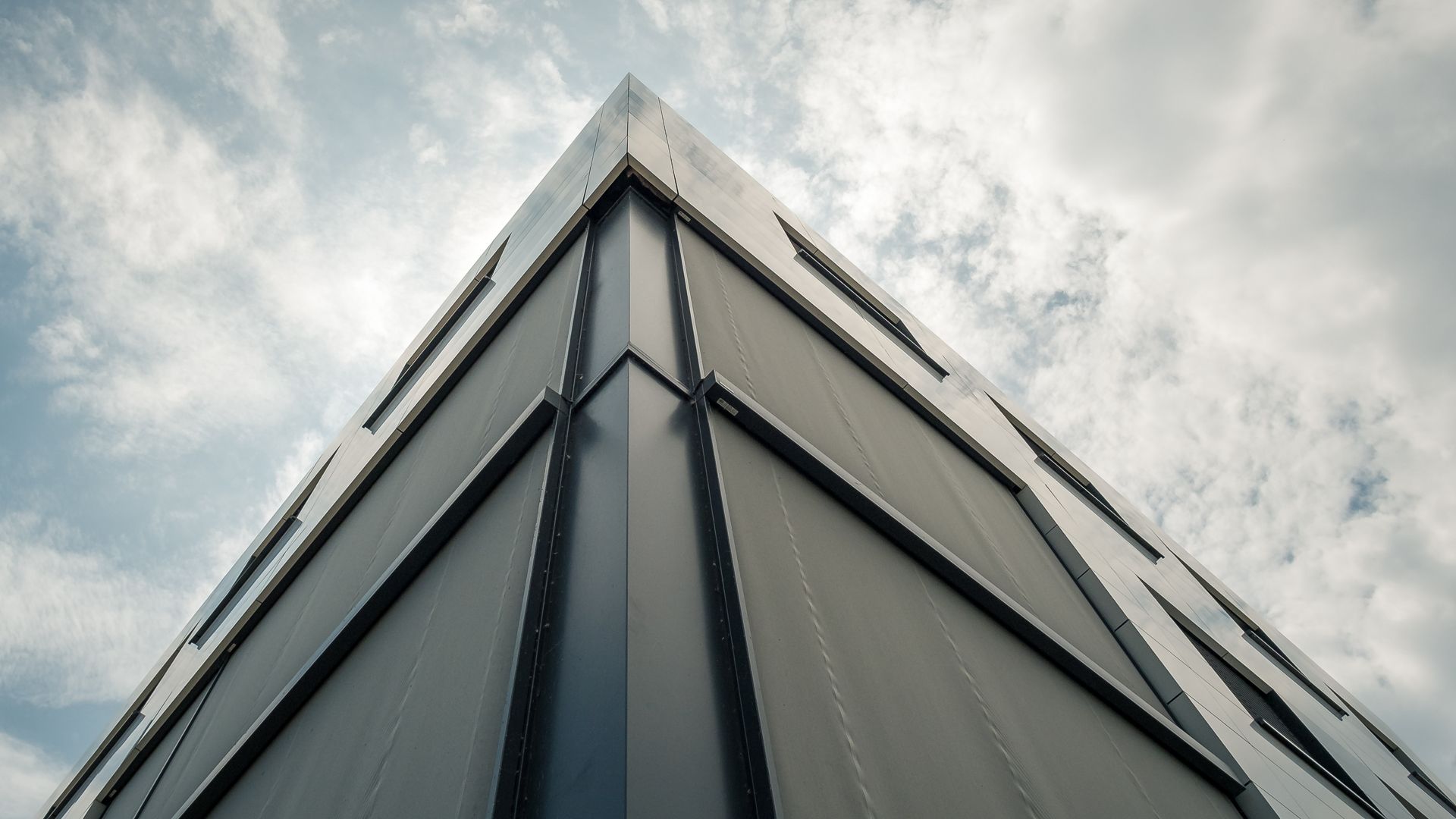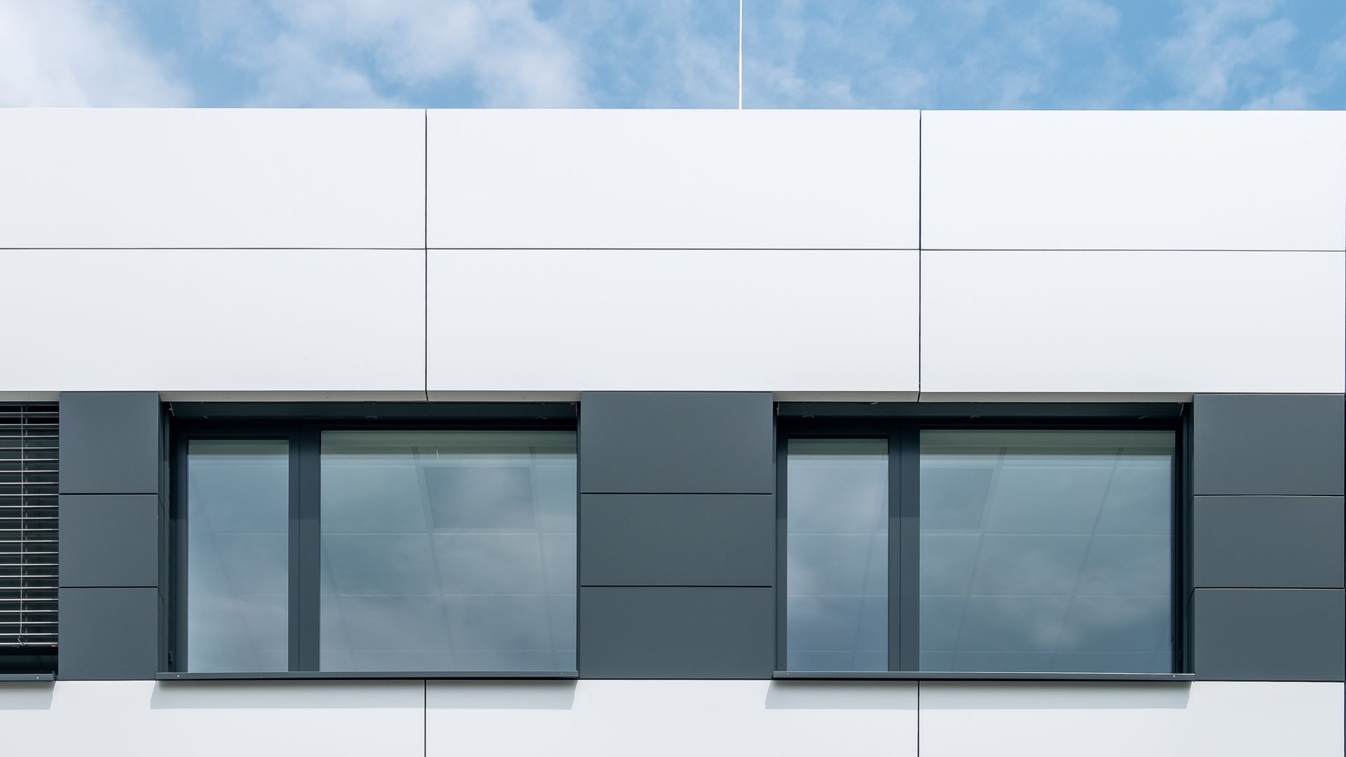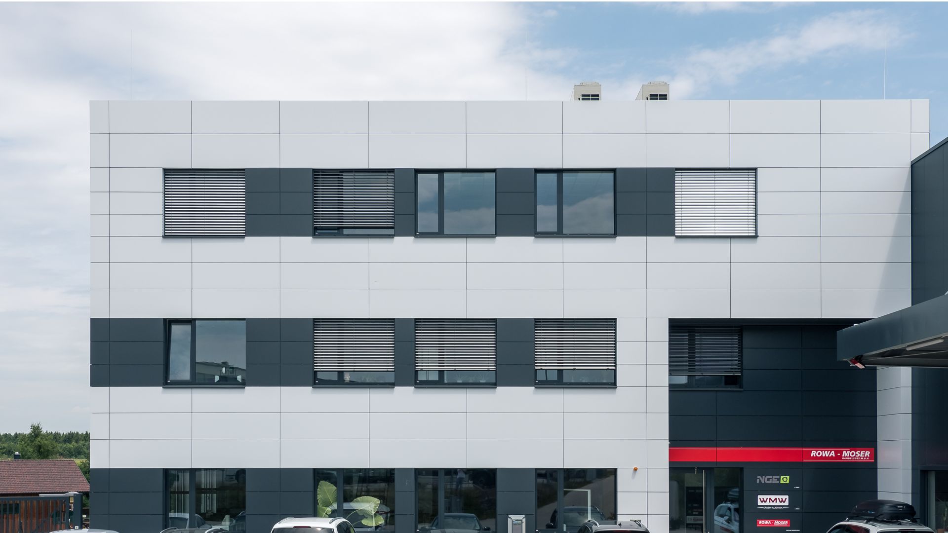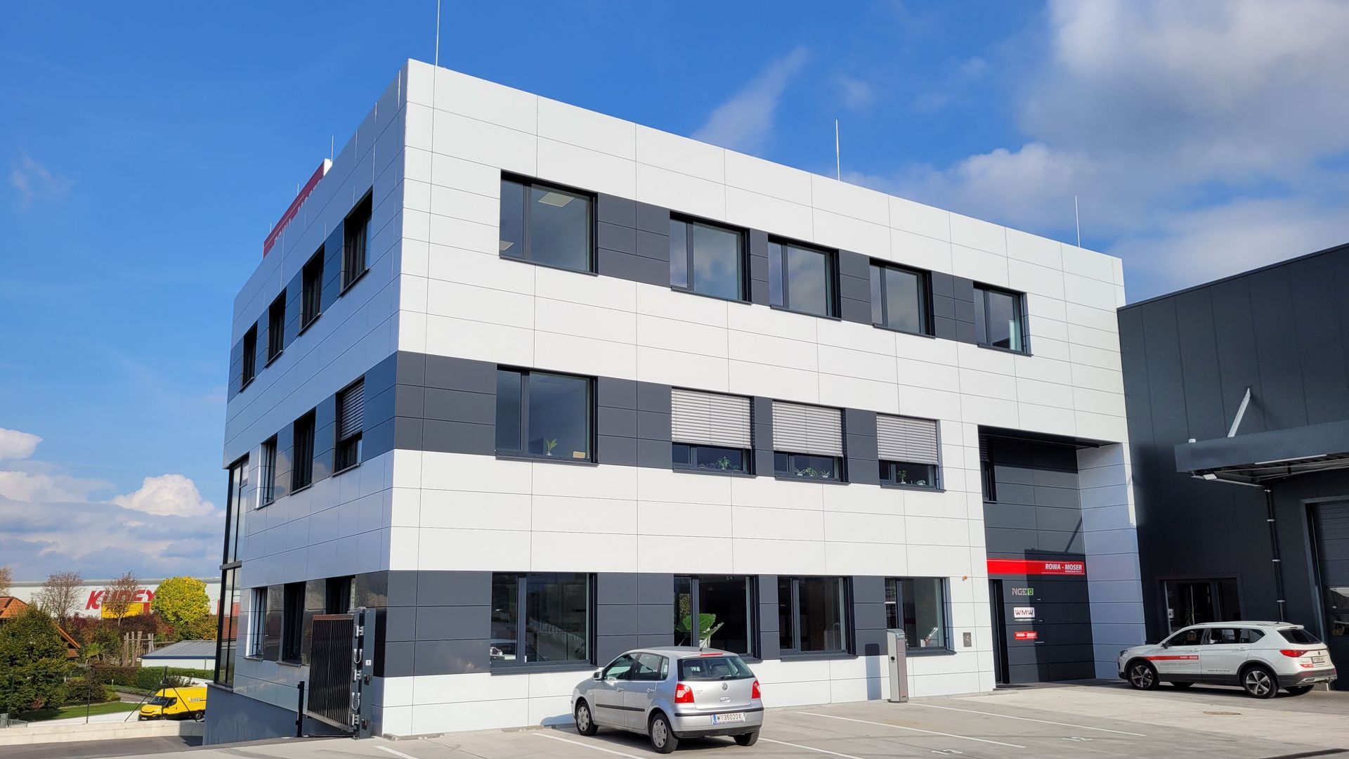 Hier wurde Alucobond in Kassettenform präzise und unsichtbar angebracht. Die geschickte Verwendung von zwei verschiedenen Farben schafft ein beeindruckendes Gesamtbild.