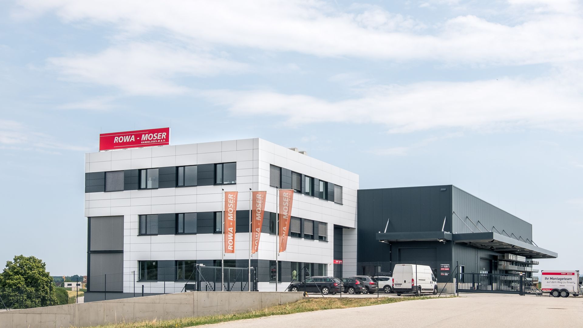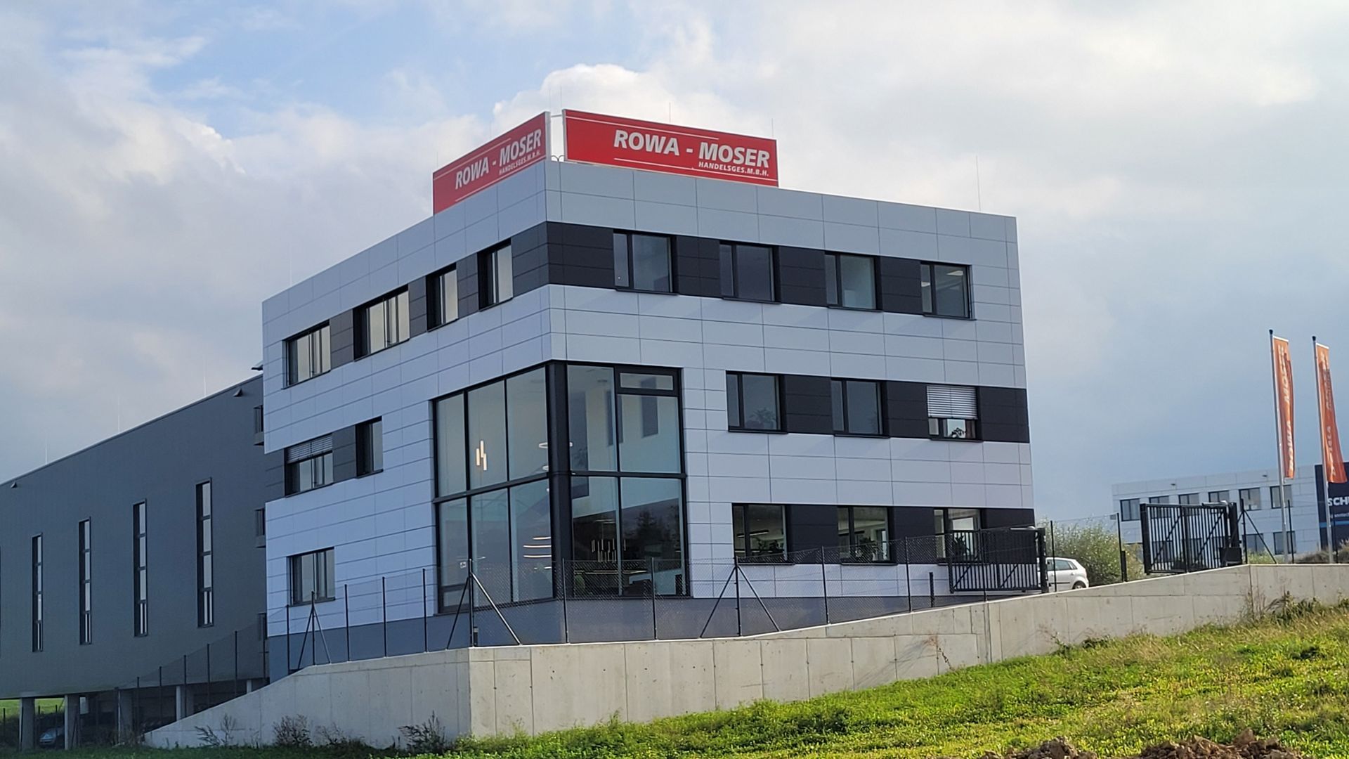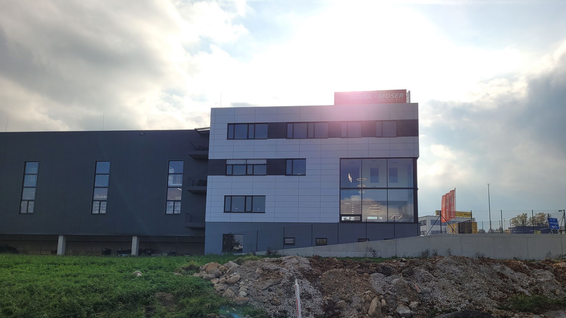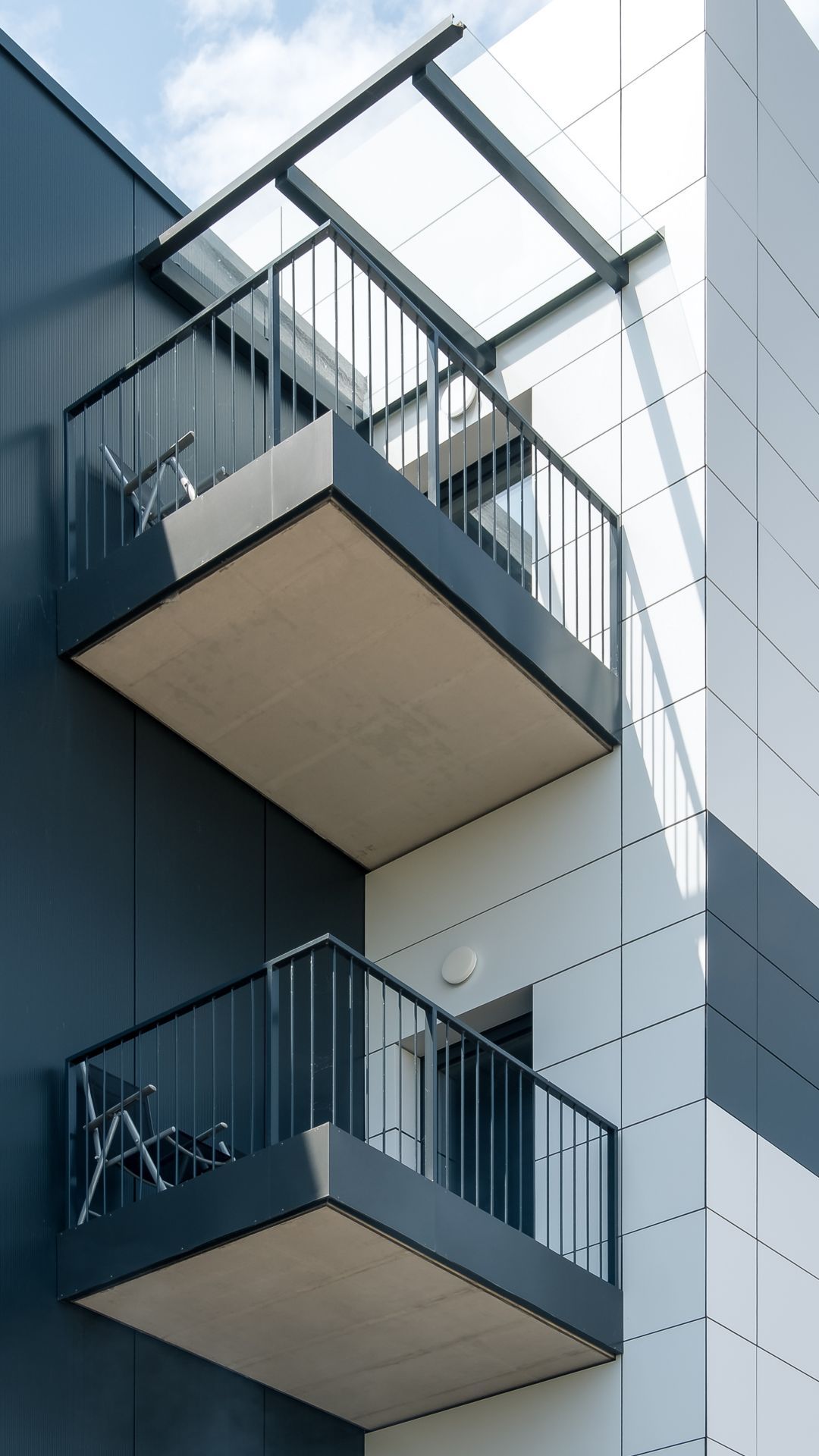 Hier wurde Alucobond in Kassettenform präzise und unsichtbar angebracht. Die geschickte Verwendung von zwei verschiedenen Farben schafft ein beeindruckendes Gesamtbild.