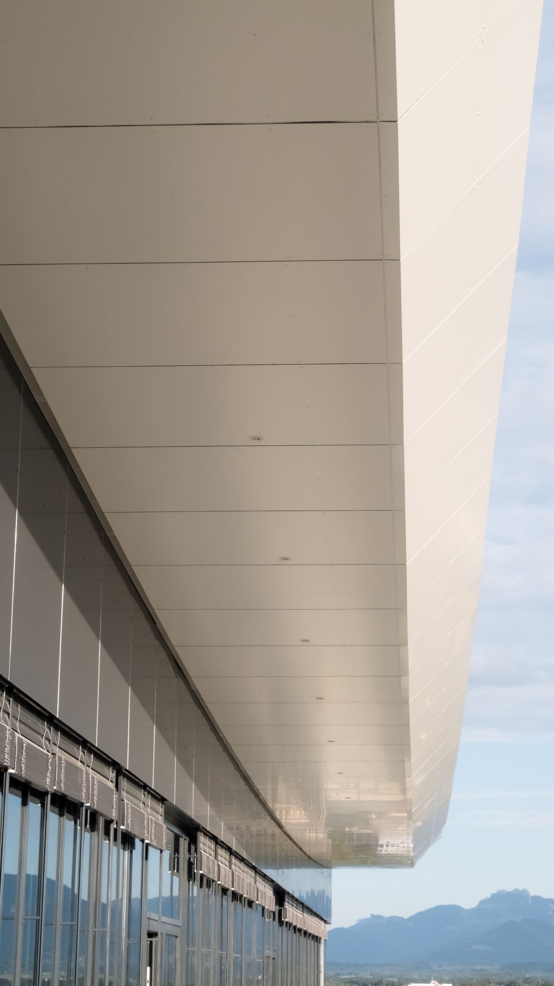 Um die moderne Optik des Gebäudes zu unterstreichen wurde eine ganze Fassadenseite als Schrägfassade ausgeführt. Eine geschwungene, elegante Überdachung gibt dem Gebäude den letzten Schliff.