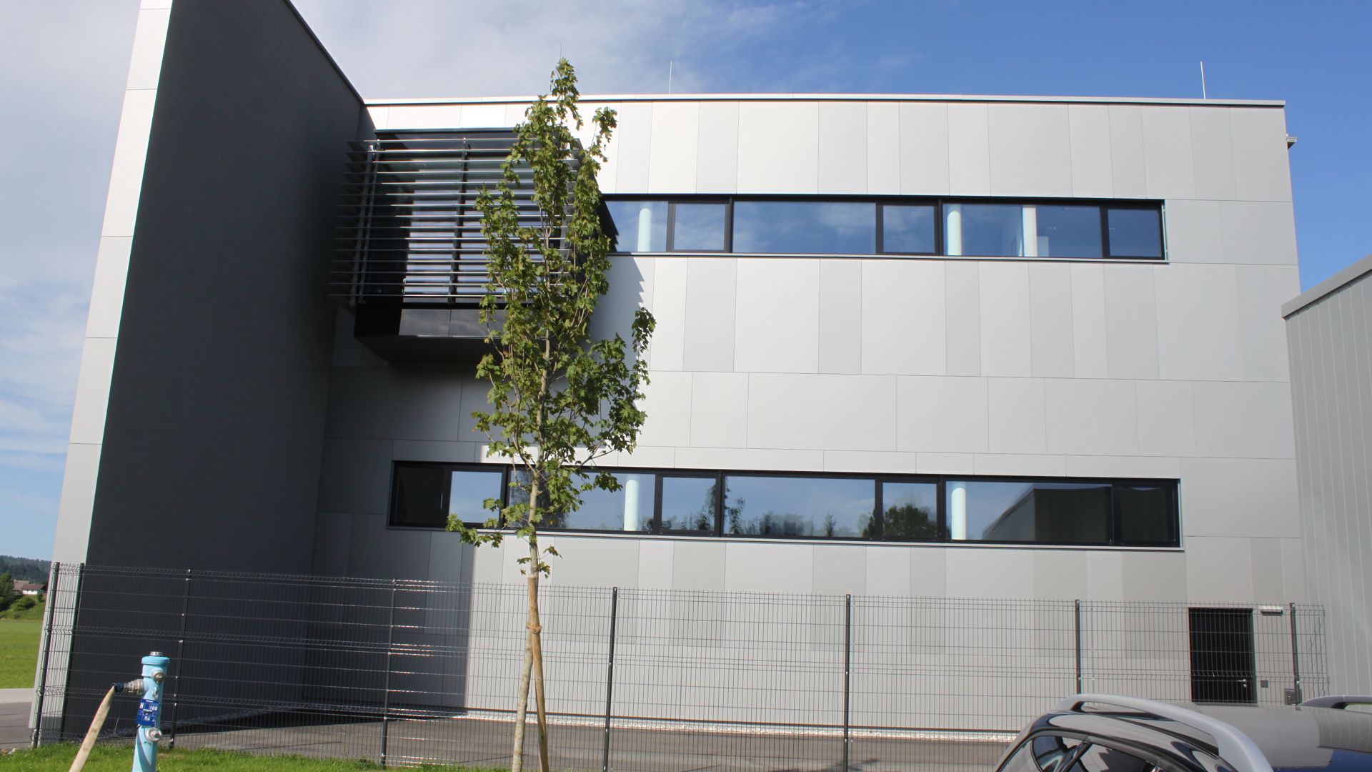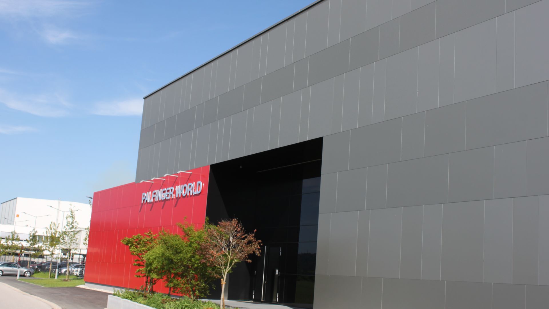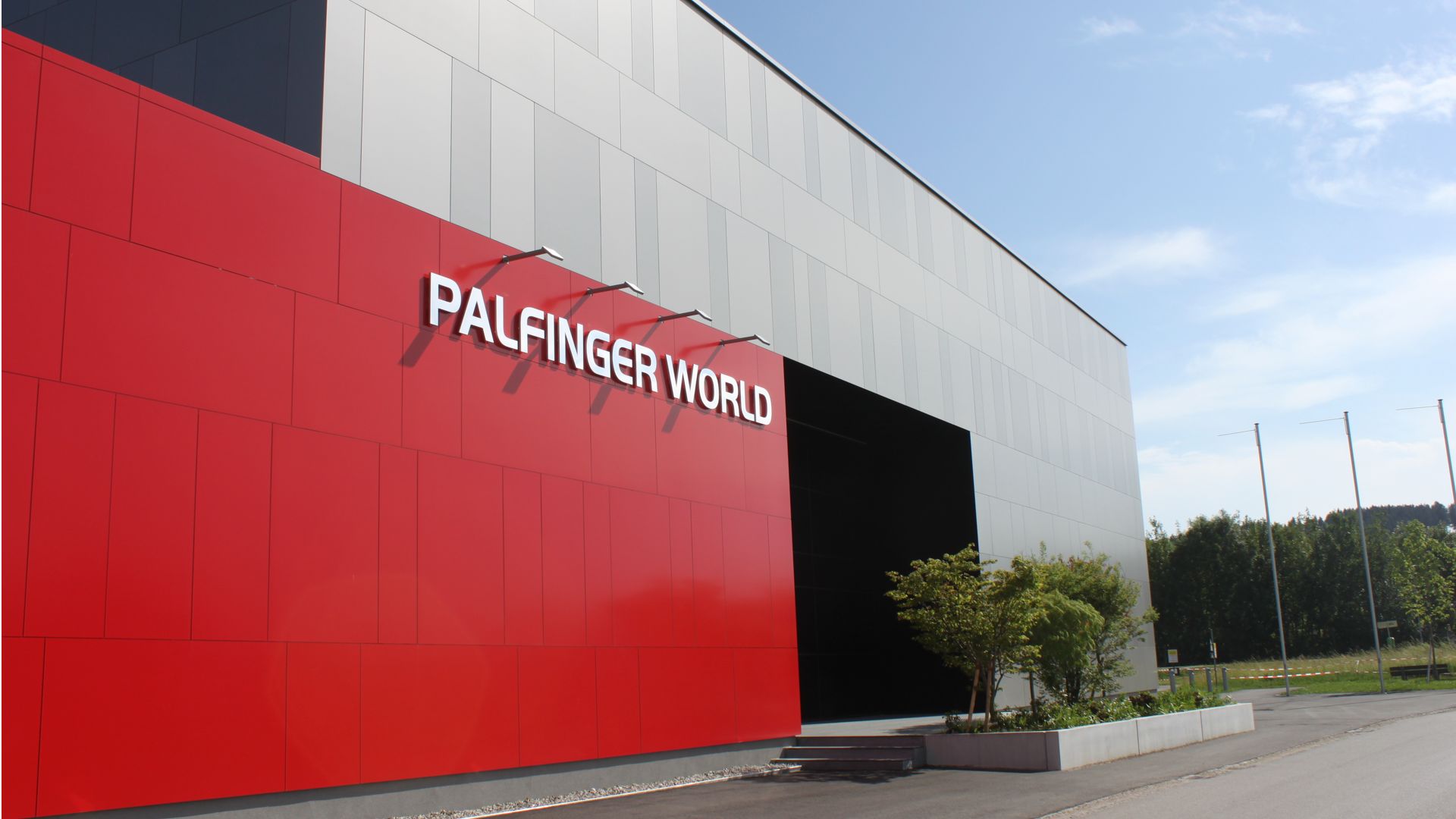Dem Design der Firmenzentrale in Bergheim nachempfunden, wurde die neue Markenwelt der Fa. „PALFINGER AG“ mit Aluverbundplatten in abwechselnden Silbertönen verkleidet. Die straßenseitige Fassade ist auf drei separaten Wandabschnitten montiert, welche auf unterschiedlichen Ebenen sitzen. Damit ein ebenes Fassadenbild erreicht werden konnte, war höchste Genauigkeit bei der Unterkonstruktionsmontage gefragt.
