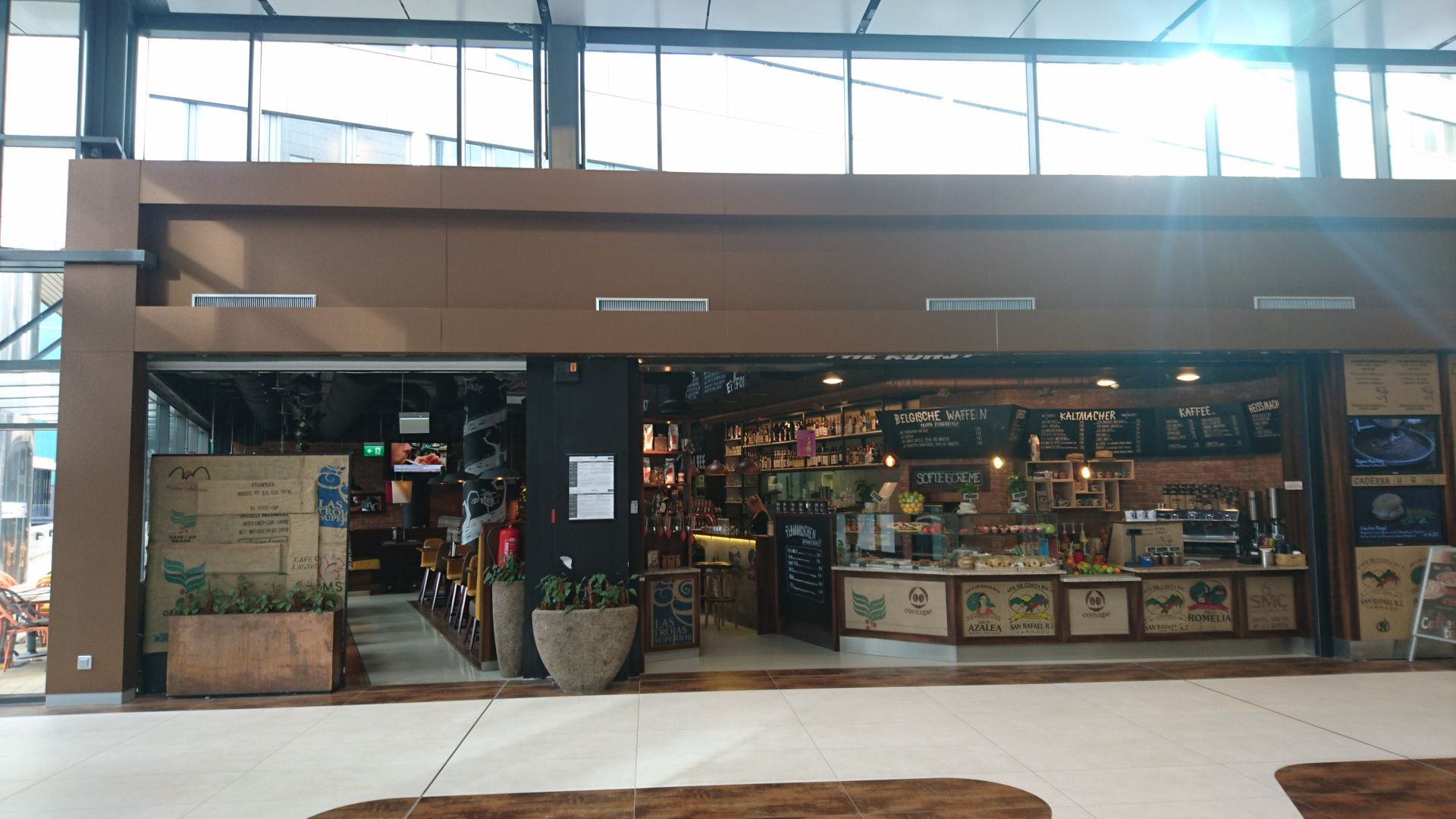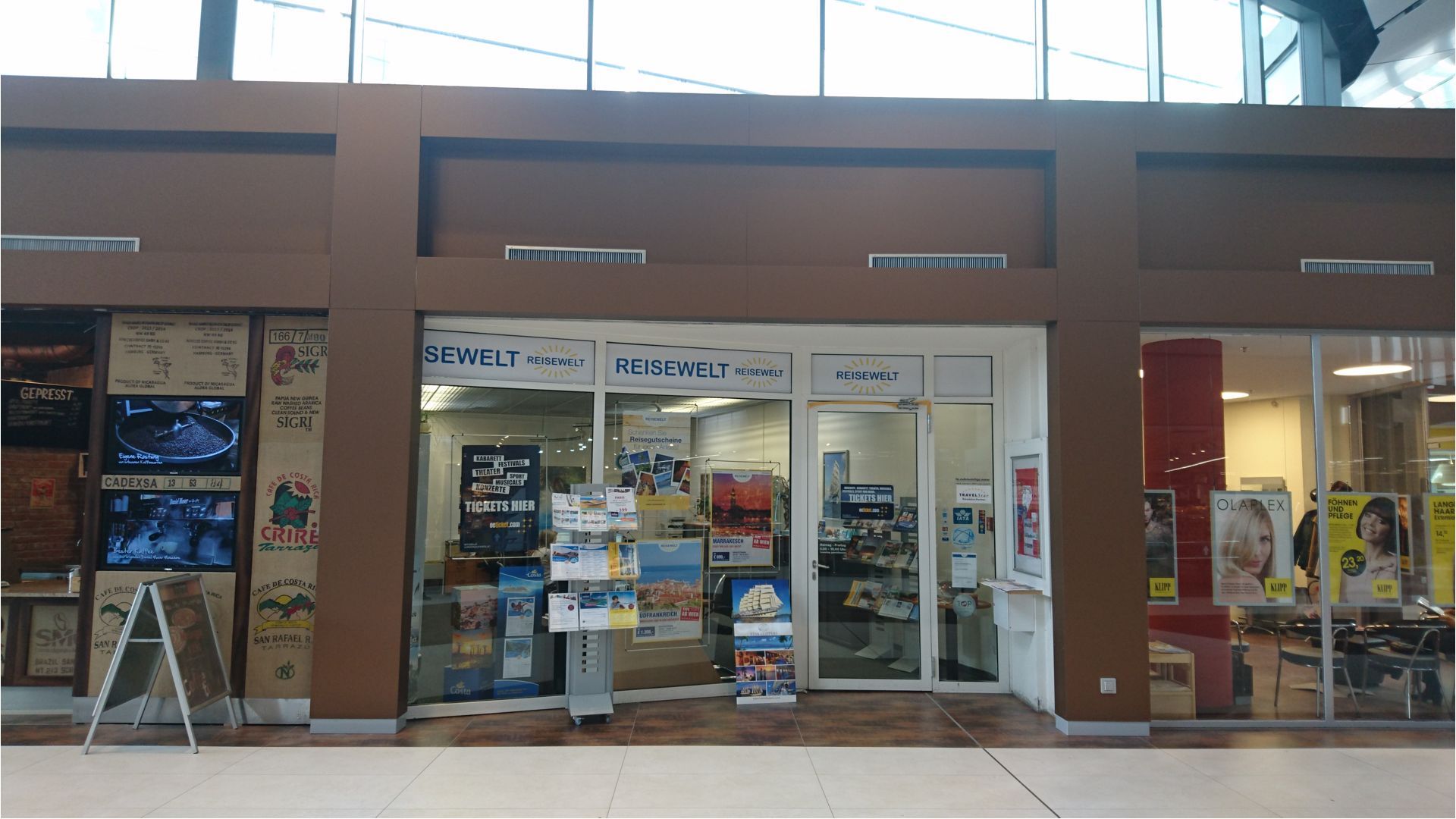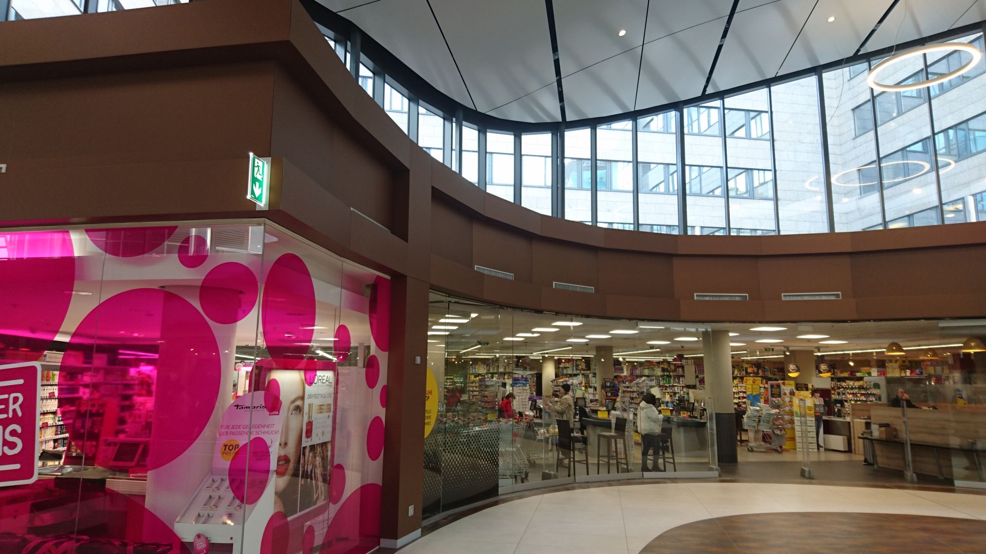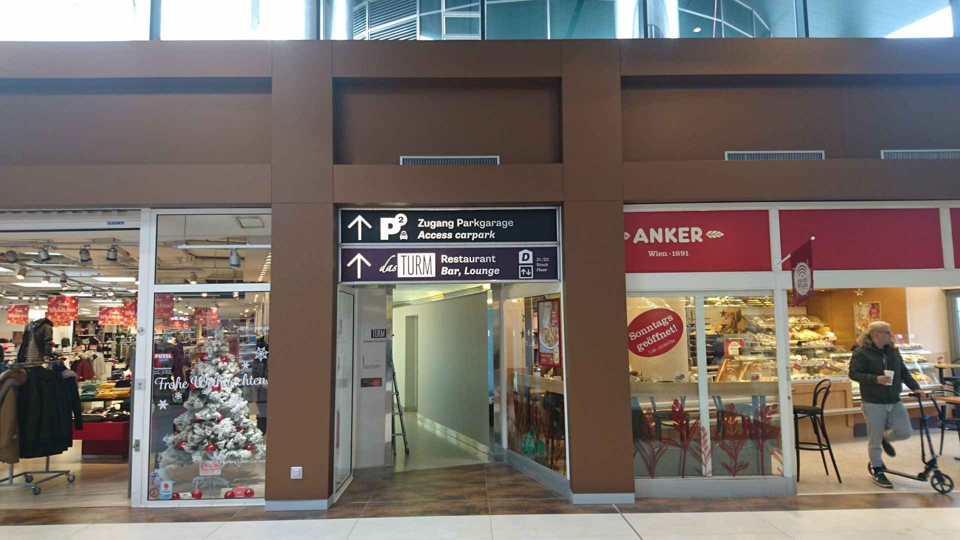 Durch die spezielle Geometrie der elliptischen Mall musste jede Alucobondplatte in diesem Bereich vor Ort angepasst werden und auf die von uns vorbereitete Aluunterkonstruktion geklebt werden. Da die Geschäfte aber immer in Vollbetrieb waren, wurde hauptsächlich in der Nacht an den Verkleidungen gebaut um keine Passanten zu stören.