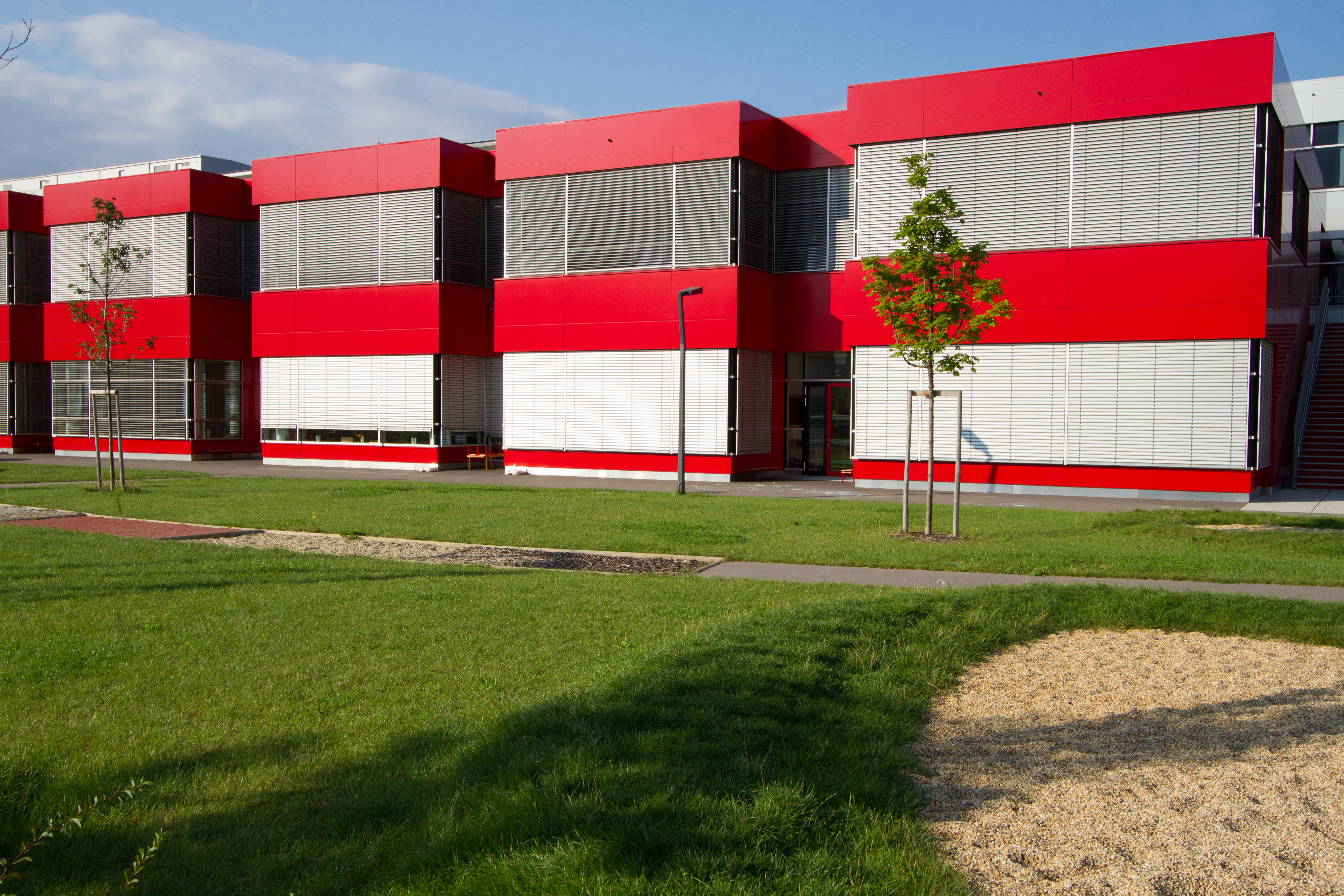 Alucobond, 4 mm in silbermetallic und rot